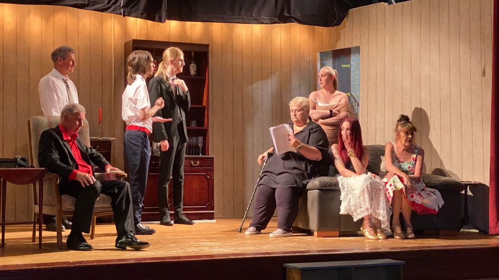 August 2025 saw the return of Bispham CastAways’ ever popular interactive murder mystery on Friday the 15th and Saturday the 16th at their theatre home at Holy Family church hall on Links Road (FY1 2RU). It was the debut play of new playwright Hayley Price, Gunshot Wedding, which she also directed and starred in following an accident which caused Tracy Johnson to drop out as Ruth Davidson.